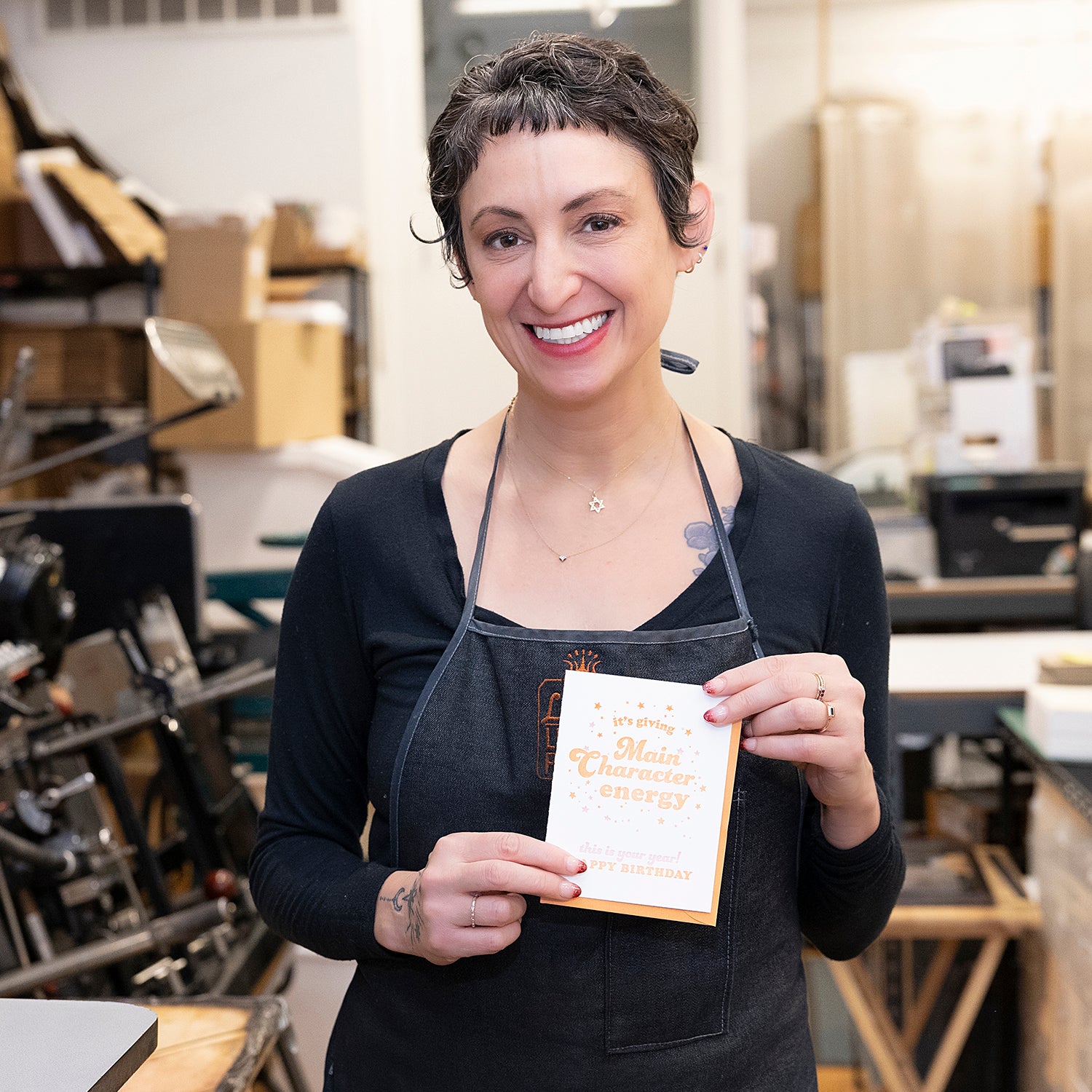 Shayna Norwood is a professionally trained visual artist with a BFA from San Francisco Art Institute. She's been letterpress printing since 2004, and Steel Petal Press has been her full time gig since 2011. When not thinking up funny greeting card ideas you can find her riding her bike around Chicago, enjoying tacos, hanging out at home with her cats and plants, or out dancing to her favorite DJs and bands.